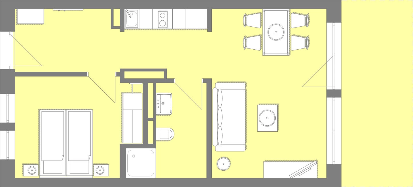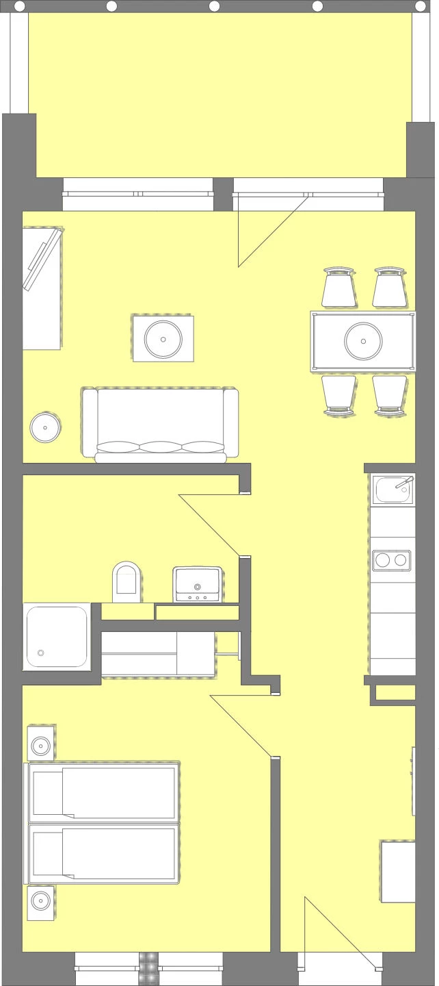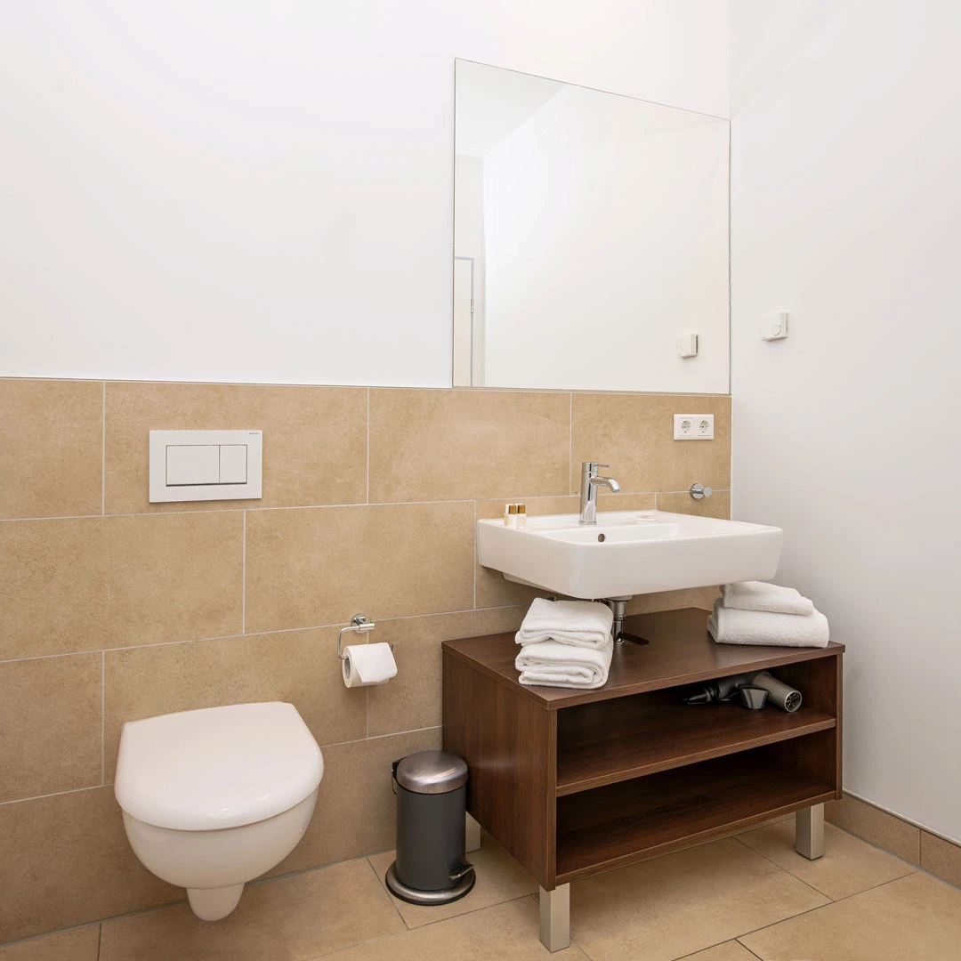 The 2-Room Eagle Apartment with approx. 50-55 m² and garden terrace or balcony offers our long-term business guests an optimal and comfortable stay in a well laid-out space.